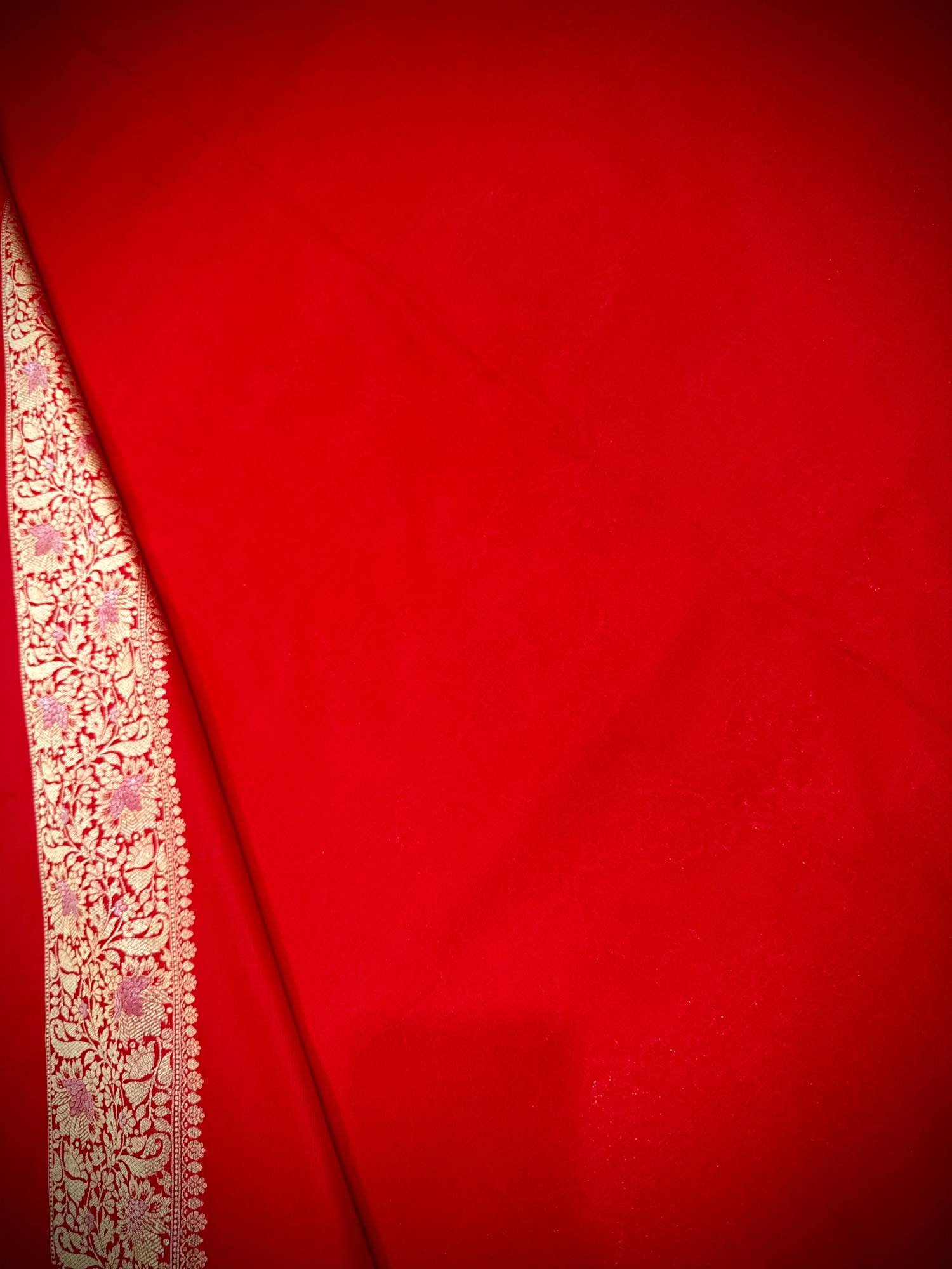 Be the first to review “Classic Red Katan Silk Saree Fabric with Floral Weaving”